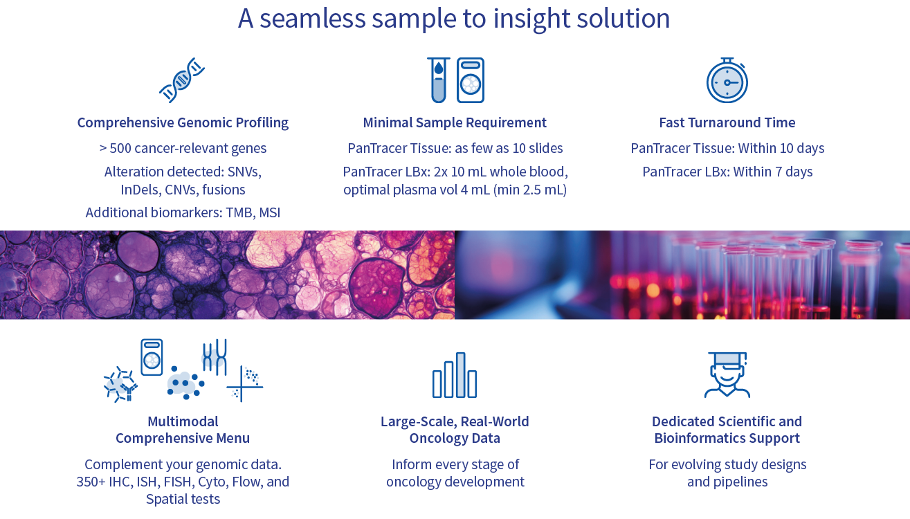 Our clinically and analytically validated CGP tests, spanning both tissue and liquid biopsy, work seamlessly to uncover comprehensive molecular insights across pan-solid tumor indications.